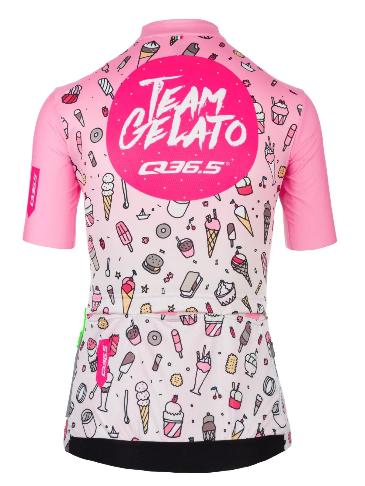 Perfect for warm weather and higher-intensity rides, the Q36.5 Gregarius Pro Team Gelato Cycling Jersey Women ensures outstanding aerodynamic performance through a modern cut and ribbed sleeve system. The ultra-breathable material of the front panels combines with the honeycomb mesh on the back to provide great thermoregulation and comfort for intense summer rides. The unique Team Gelato design encourages us to push that bit harder to get to the gelateria faster, since nothing beats a gelato after a hot and challenging ride.