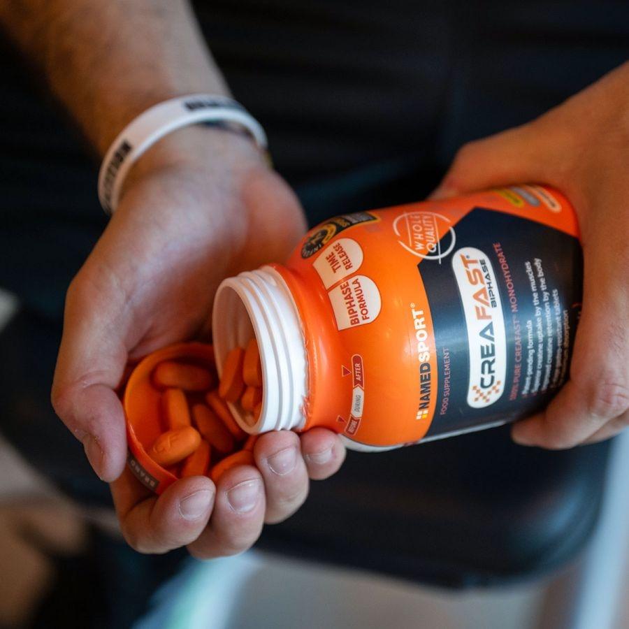 CreaFast® is a food supplement in gastro-resistant tablets based on creatine monohydrate, characterised by a biphasic patented formula which enables a chrono extended release of creatine. The formula consists of the physical mixture of two properly calibrated components: