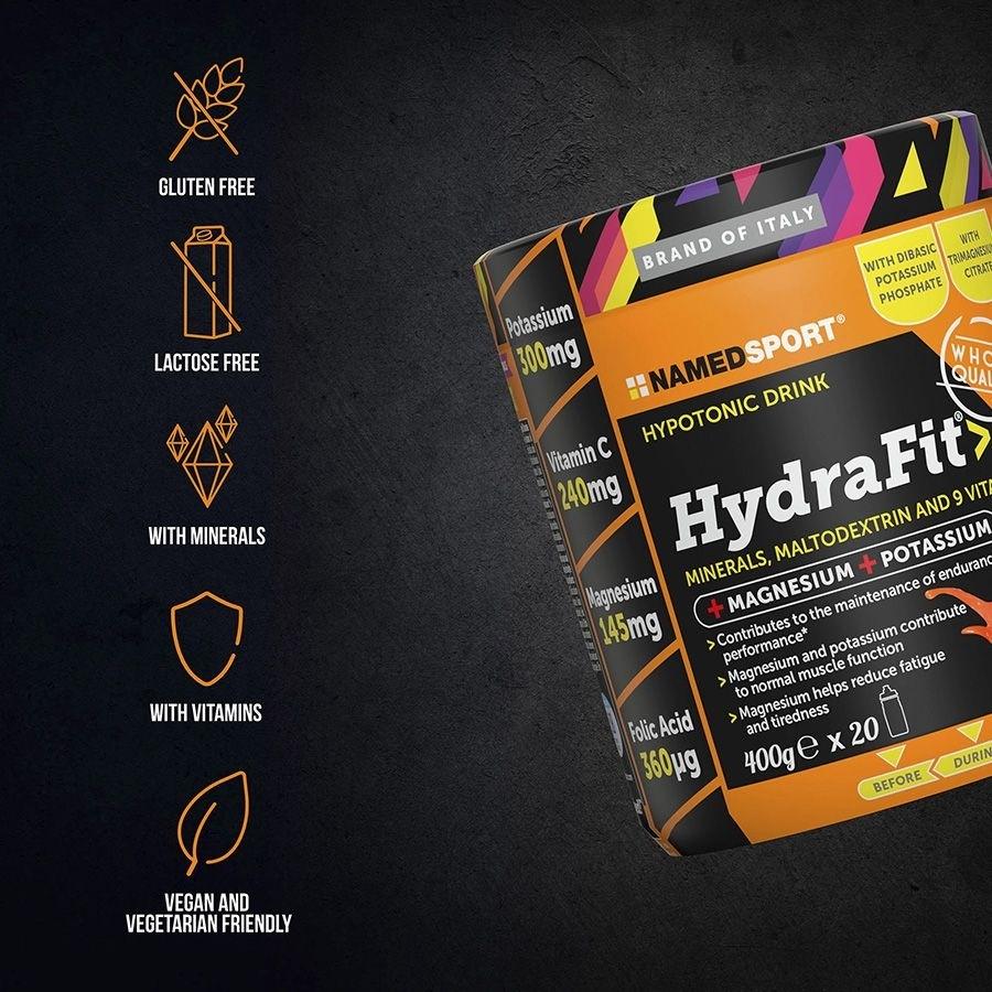 HydraFit> 是礦物鹽、麥芽糊精和維生素製成低滲透壓的電解質飲料。(滲透壓 190 mOsm/l)。HydraFit> 補充身體因劇烈運動時出汗過多而流失的礦物鹽。鎂和鉀可以維持正常的肌肉功能並減少疲勞。