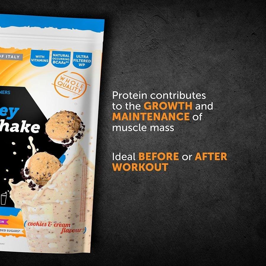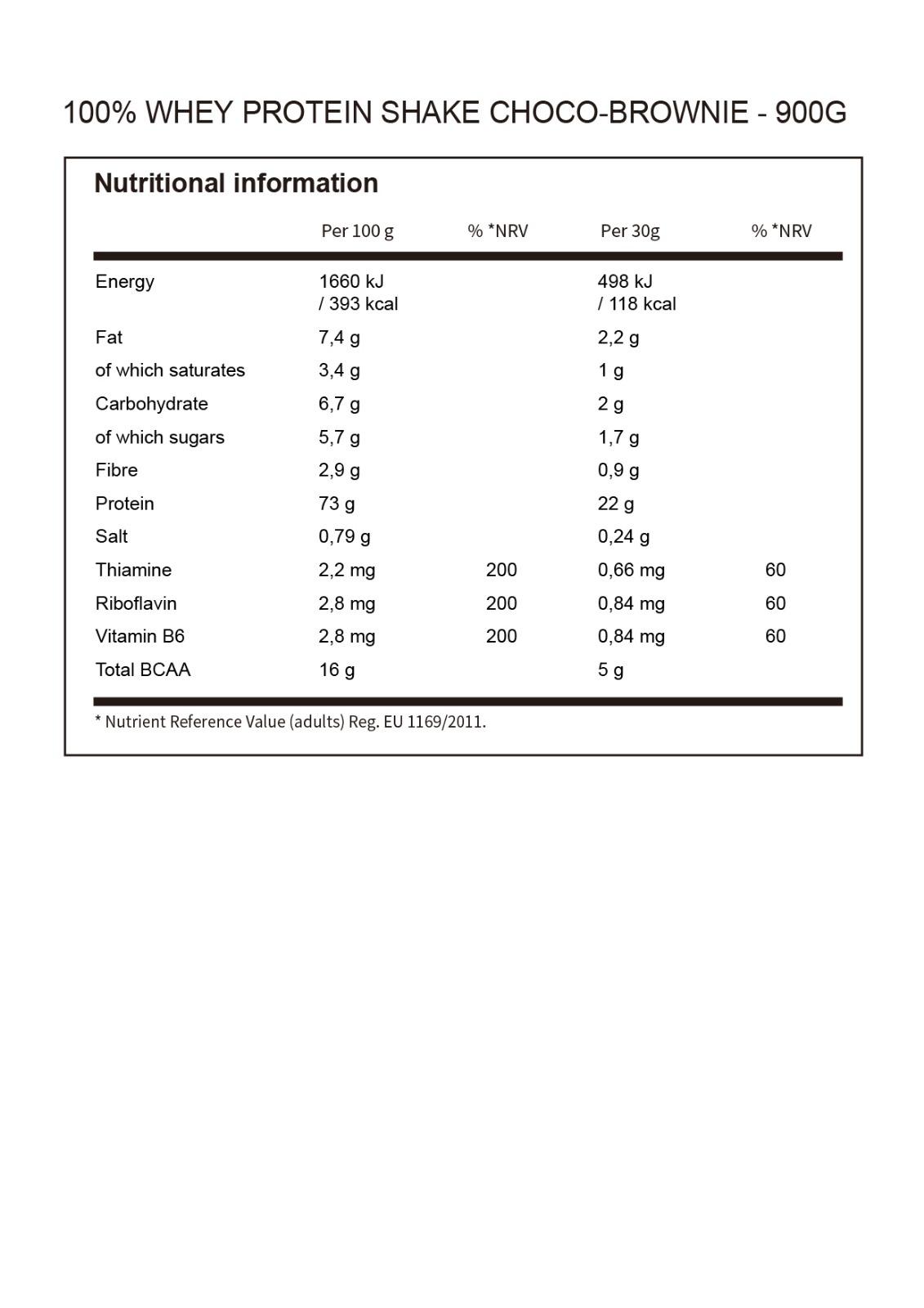 超過濾濃縮乳清蛋白,添加維生素 B。蛋白質有助於肌肉質量的生長和維持。維生素B12(0.84毫克/劑)有助於減輕疲勞和疲勞,維生素B6(0.84毫克/劑)有助於正常的能量代謝