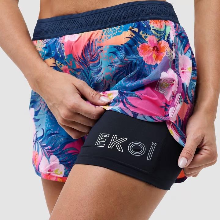 The EKOI RUN 2-in-1 women's shorts feature a fitted stretch first layer under a loose woven outer layer. It offers great flexibility and incorporates sweat-wicking technology to keep you dry and offer you maximum comfort.