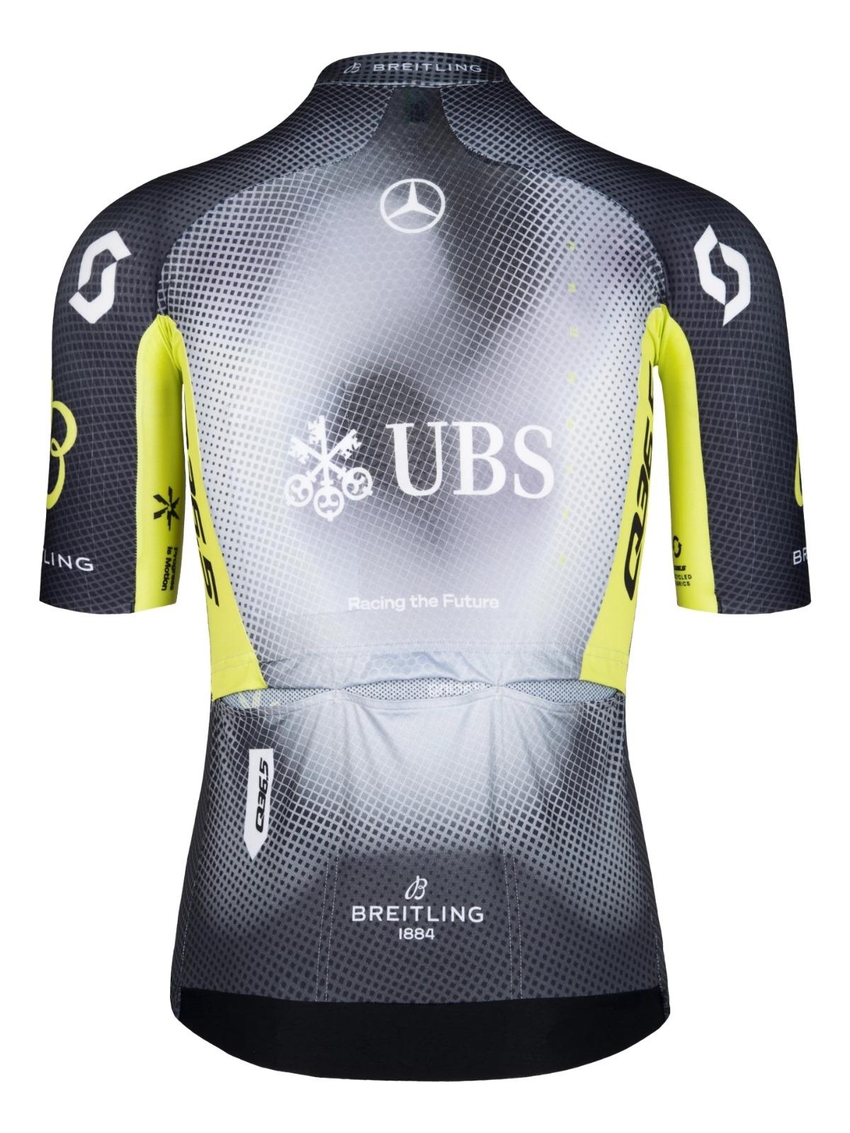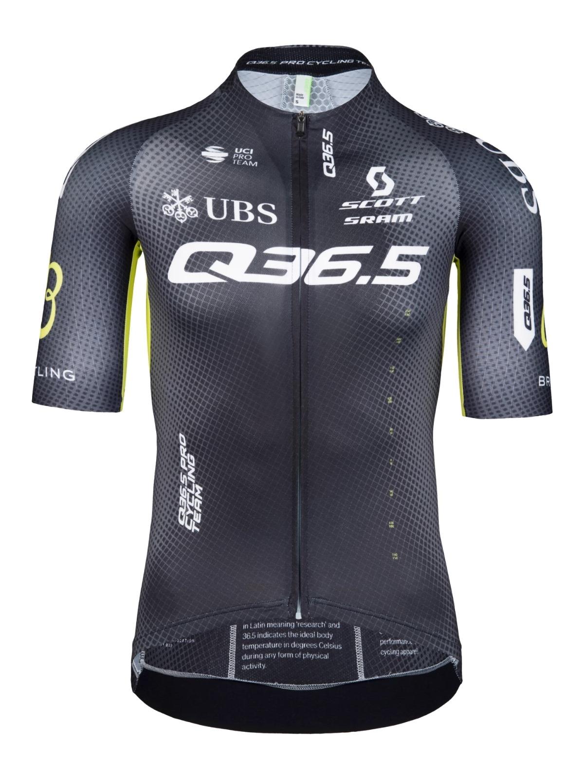 The Q36.5 Pro Team Jersey combines 4 proprietary fabrics and 11 patterns, all strategically placed to allow for next-level aerodynamics and thermoregulation. The visual elements of the team kit are inspired by our Body Mapping studies, where we analyzed the heat and sweat zones of our athletes. Made for competition, it helps you maximize your performance during training and racing.