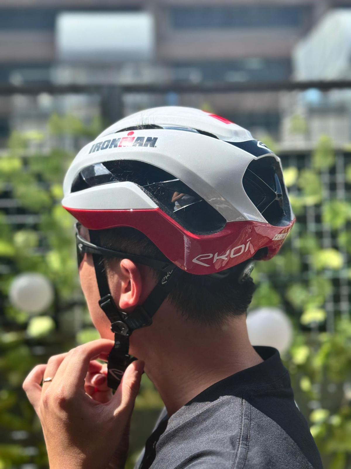 As part of Ekoï's partnership with the IRONMAN label, the new Ekoï Crystal helmet takes on the color codes of this challenge which sees the world's best triathlon specialists compete each year.