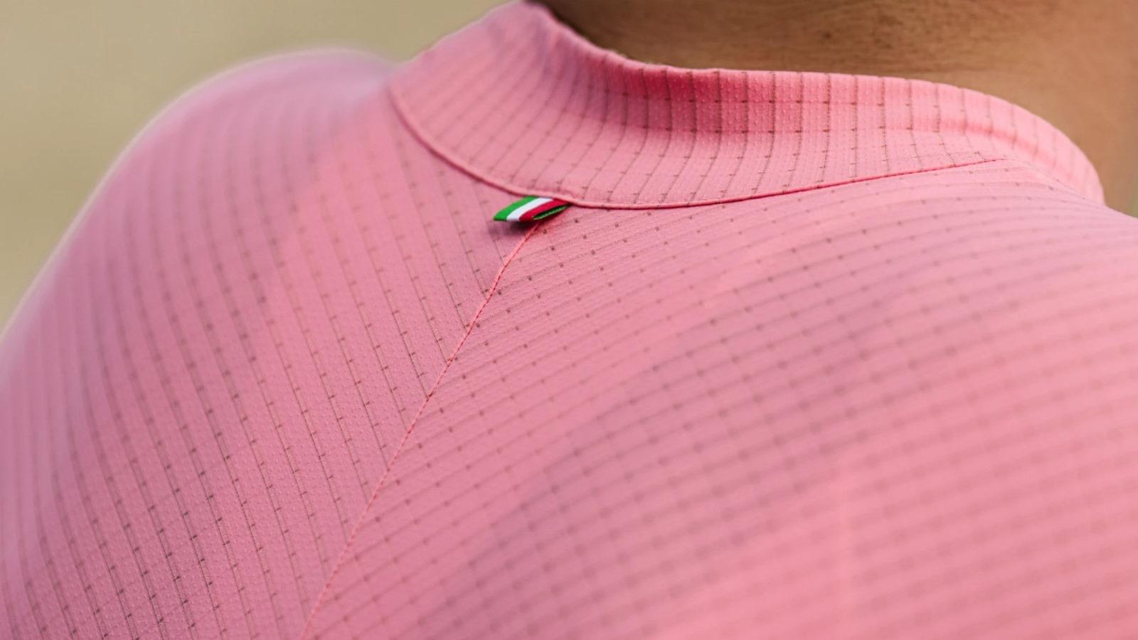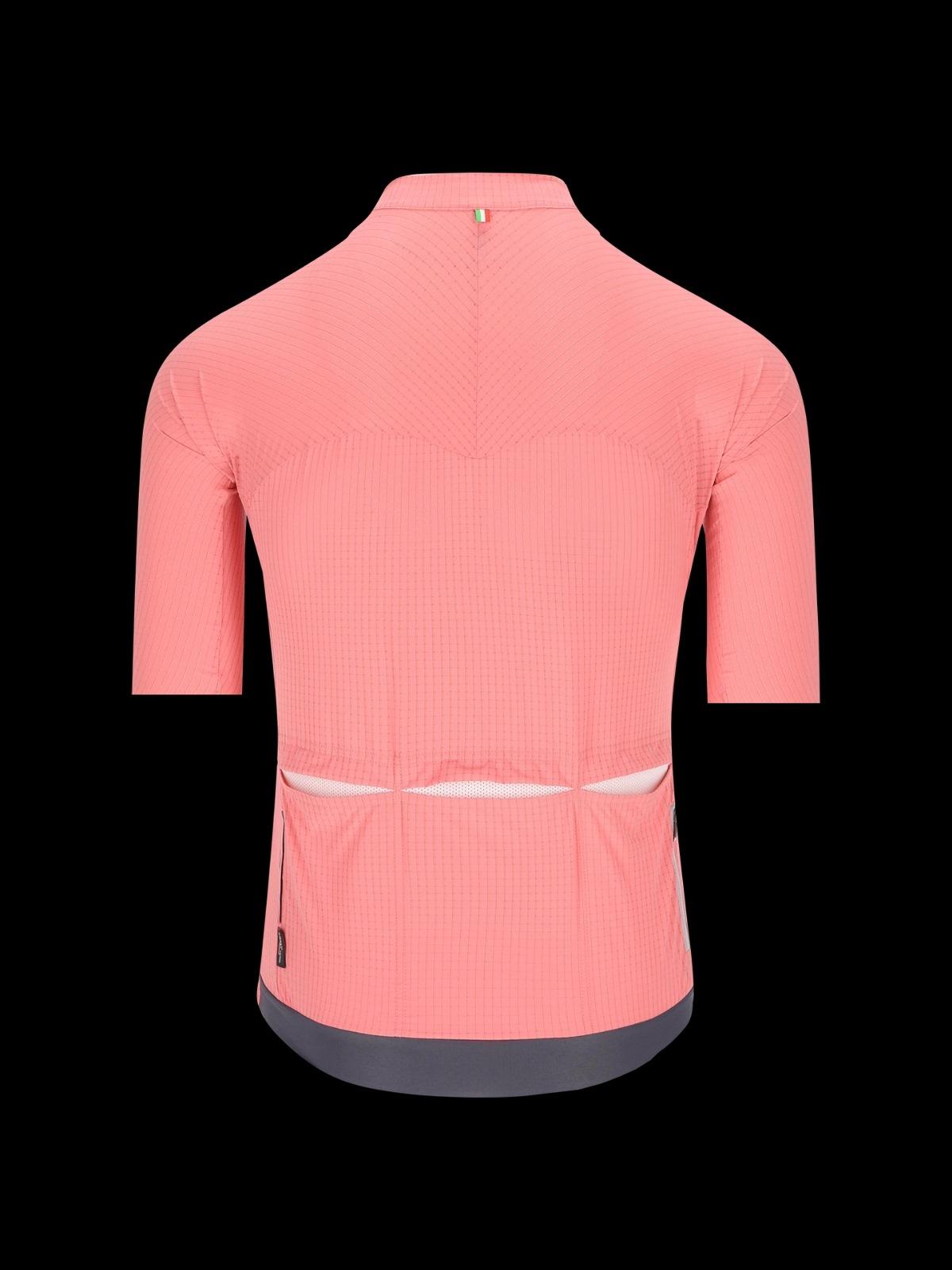 Q36.5 Dottore Pro Giro 粉紅騎行服是為了慶祝環義大利自行車賽 (Giro d'Italia) 的 Maglia Rosa,這是世界上最具代表性的領騎服之一。採用銀線 3D 編織布料,即使在最艱苦的努力下也能讓您保持乾爽。這種獨特的材質超輕,穿著舒適且貼身,而經過空氣優化的紋理則在 40 至 59 公里/小時的速度下提供了最大的優勢。