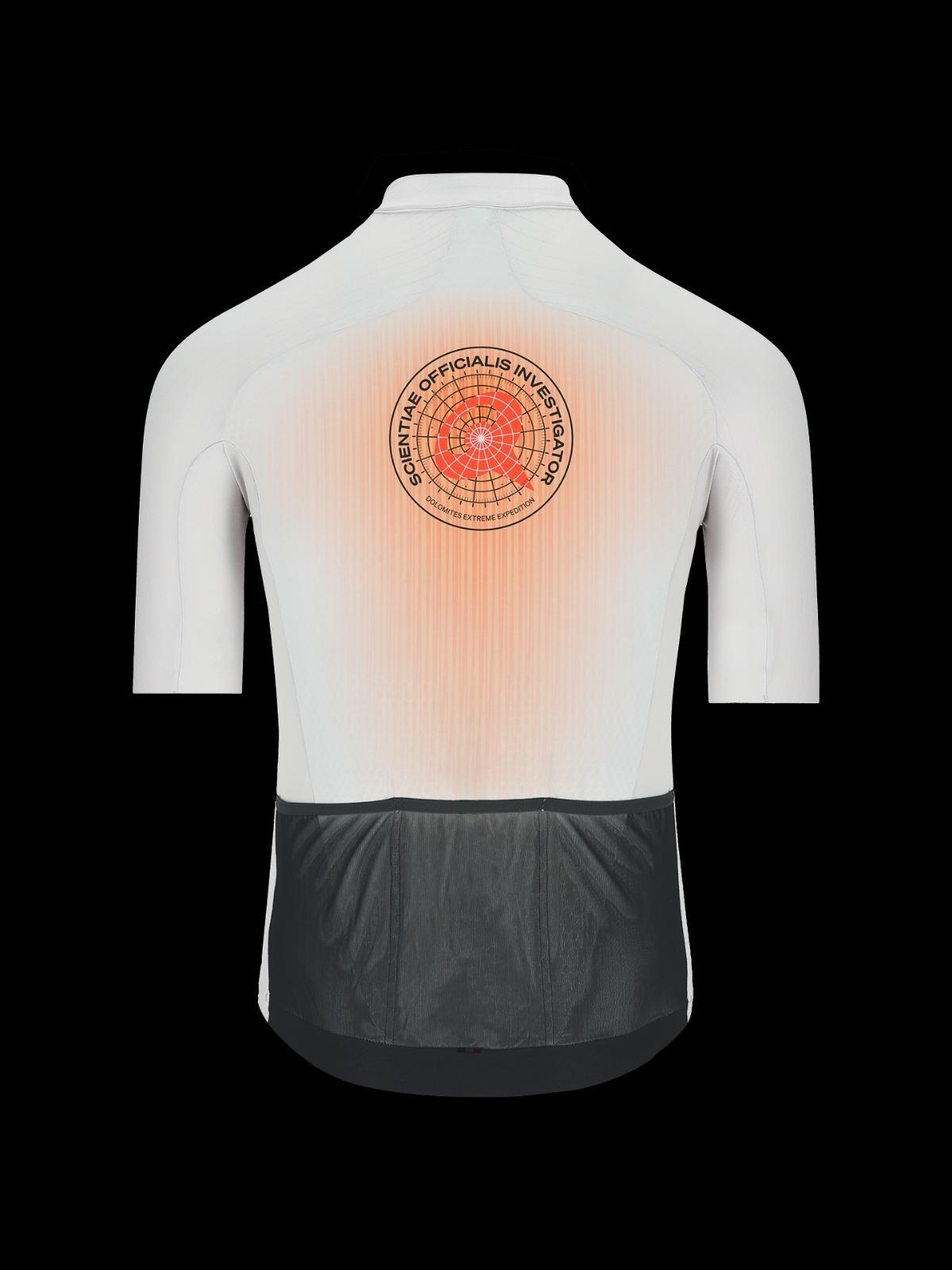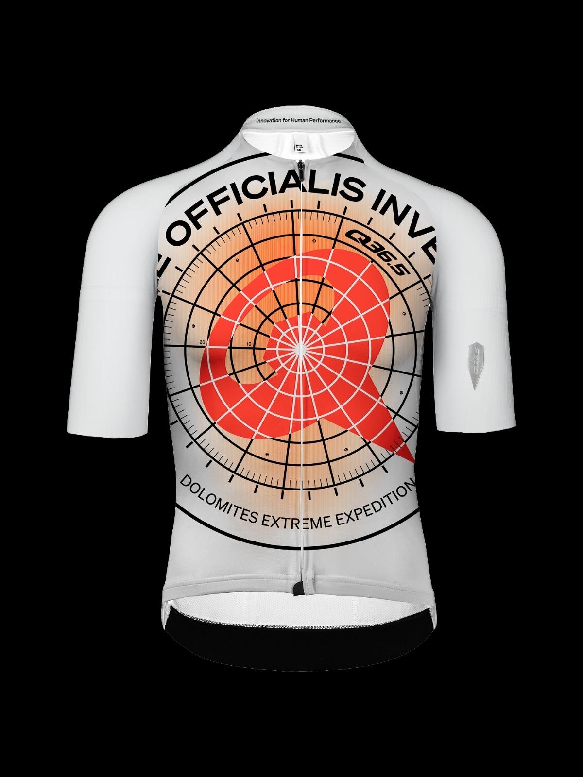 Inspired by and dedicated to the extreme nature of riding on our local Dolomites road, the Q36.5 Gregarius Clima Dolomites Extreme Jersey features our new #radarfocus logo first launched with the 2025 Q36.5 Pro Cycling Team kit. The radar is the ultimate symbol of both focus and navigation under difficult conditions, metaphors of the high performance qualities of Q36.5. The technical characteristics of the jersey are identical to those of Gregarius Clima jersey, with a body mapped cut that conforms perfectly to the shape of the torso, enhancing the aero benefits. The arms and shoulders are cut to ensure no fabric bunches up behind the neck and no material flaps in the wind. The longer arm length also works to keep an aero edge. To wear the Dolomites Extreme jersey is to feel beyond prepared, it is to become a Q36.5 SCIENTIAE OFFICIALIS INVESTIGATOR.