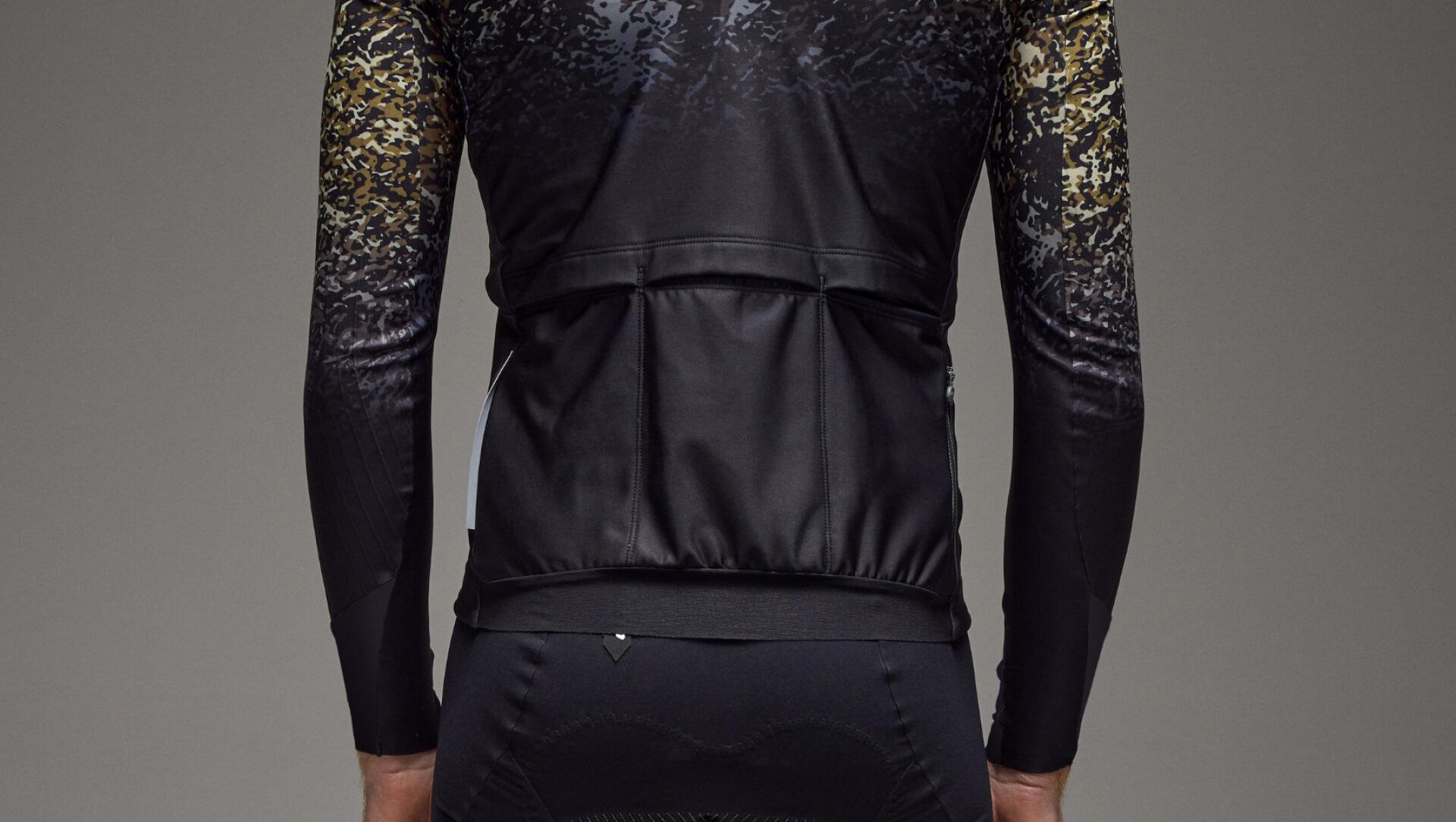 The jersey sleeves are constructed from an aerodynamic thermal ribber fabrics and is cut with an advanced Raglan Cut, where the sleeves do not meet at the back for an improved on-bike position and aerodynamic advantages.