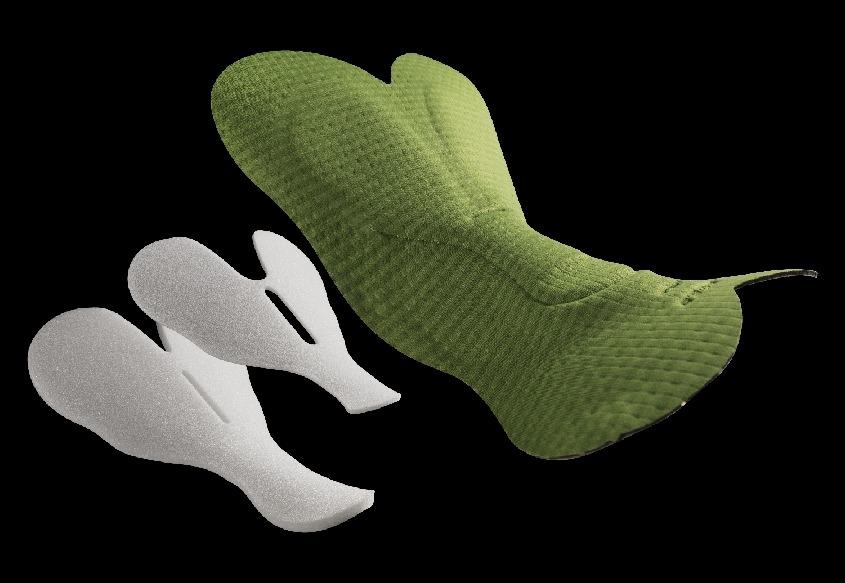 UNIQUE Woman 採用了世界上首款融合chamois技術系統的女性專用版本:這包括在坐墊中採用縫製和熱模塑填充技術,將兩者的優點融合到單一設計中。對於需要最大靈活性和透氣性的會陰(前部)區域,切割和縫製了密度最高的 120kg/m³ 開孔泡沫,而對於坐骨(後部)區域,則使用了「光滑」多密度熱模墊,與支撐和襯墊相比,該區域的靈活性不那麼重要。