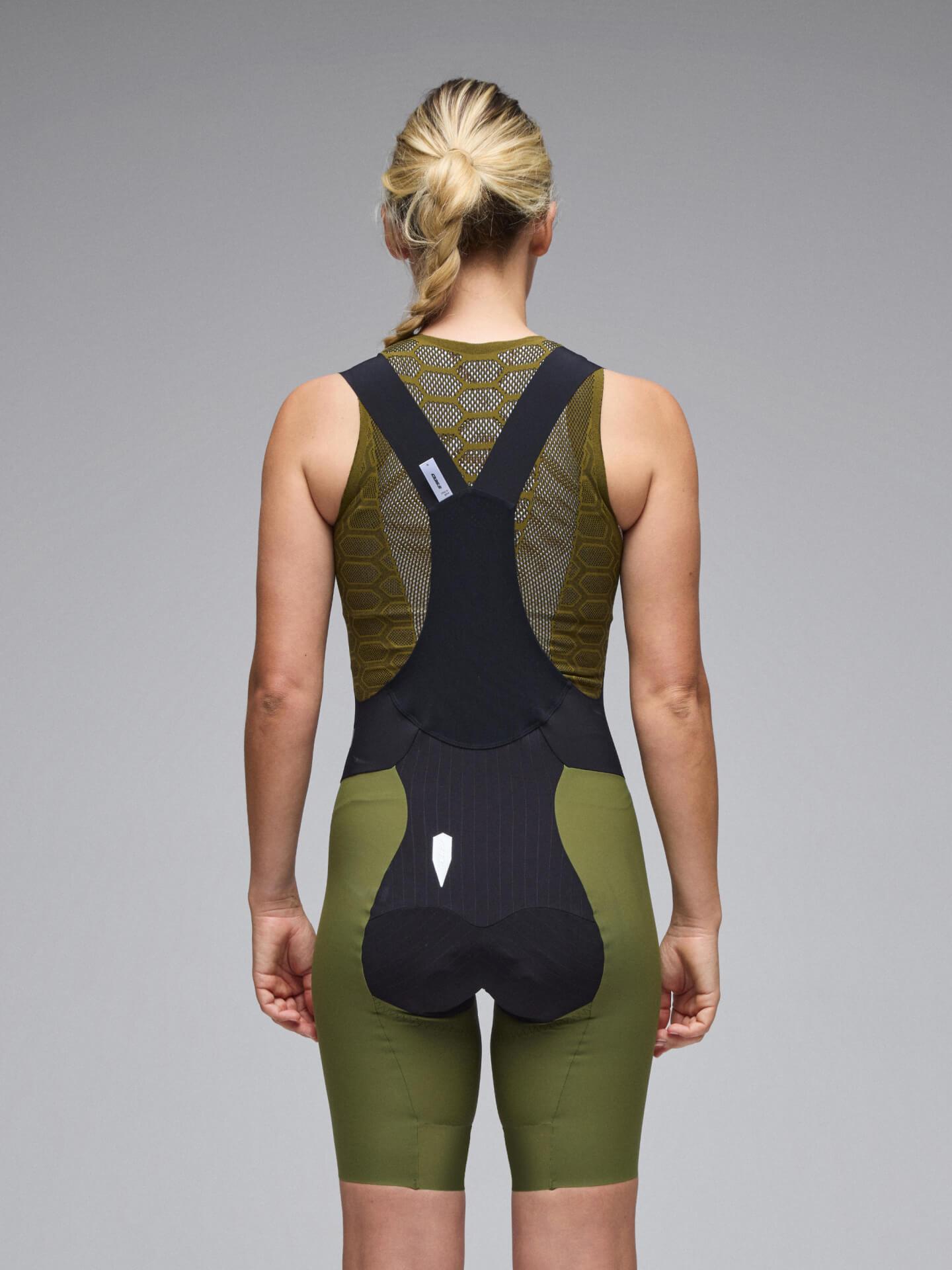 Totally redesigned from the ground up for 2025 with 100% proprietary components, the Q36.5 Gregarius Pro Bib Shorts for Women have been engineered to provide the rider with the most free, unrestricted, and “not-even-there” on-the-bike feeling, without any compromise to our signature comfort and ergogenic support. This uniquely unrestricted feeling of the Gregarius Pro is the result of system which fuses a new ergogenic pattern (four different fabrics, minimal stitching) with our revolutionary adaptive chamois pad. The Q LAB Air Chamois employs a single layer cover fabric without lamination or foam for rapid drying and breathability during hot conditions while the C-shaped foam pad underneath is inserted directly into the pattern of the shorts, creating a single plane from straps to groin. This design offers noticeably superior stability and comfort for the rider. Even during the hardest moments of the climb, you will need to look down at your legs to remind yourself that you are even wearing anything!