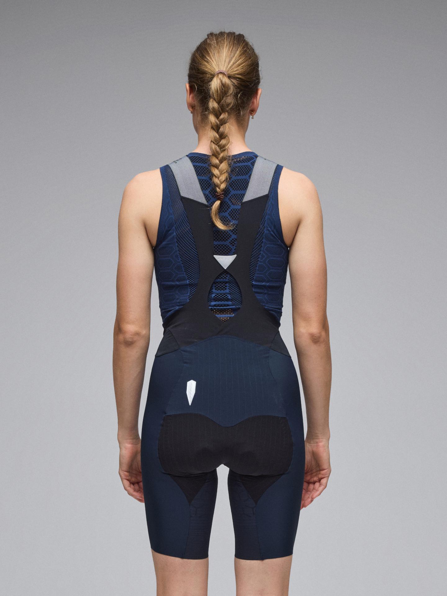 The Q36.5 Dottore Pro Bib Shorts for Women are the world’s leading high performance woven bib shorts, using technologies pioneered by Q36.5 and continuously refined over the last ten years. From the very first pedal stroke riders will appreciate a feeling of superior muscular support, comfort, and on-bike stability. This unique feeling is achieved through the use of four different proprietary woven fabrics as well as our patented Q LAB Air Chamois, which provides total comfort and superior moisture management. The use of a high-density woven material with gradual compression along the leg panels in particular ensures a superior alignment of muscle fibers during the repetitive action of lengthening and contracting the legs, creating an important performance advantage over long distances. The Silver yarn found in the leg panels reduces the negative impact of naturally occurring electric charges produced by the body during exercise as well as boosting the blood flow and increases oxygen supply to cells.