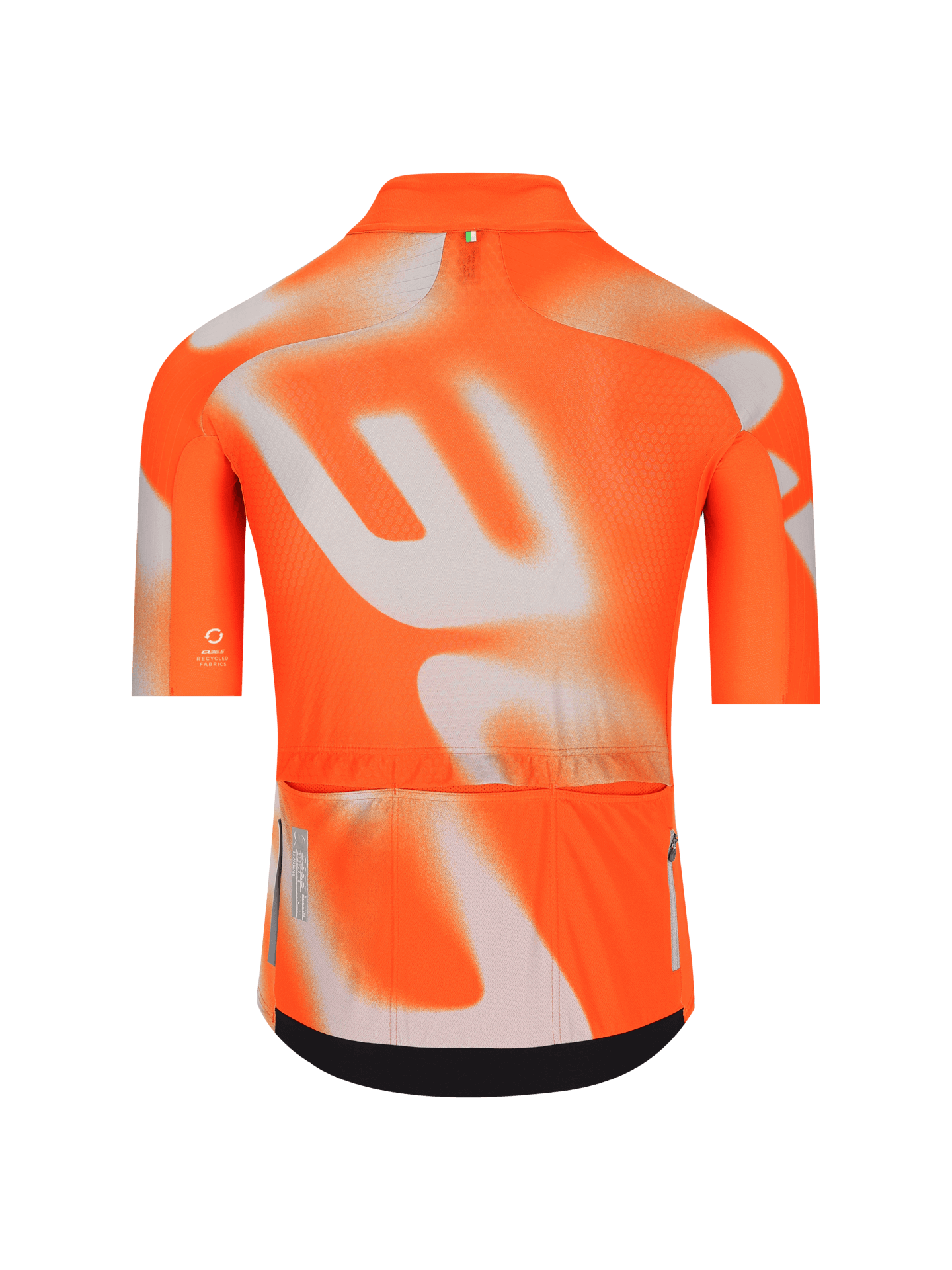 Perfect for warm weather and higher-intensity rides, the Q36.5 Gregarius Pro Cycling Jersey ensures outstanding aerodynamic performance through a modern raglan cut and ribbed sleeve system. The ultra-breathable material of the front panels combines with the honeycomb mesh on the back to provide great thermoregulation and comfort for intense summer rides. The big logo graphic is stylized from the repetition of an oversized Q36.5 logo creating an aggressive new racing pattern.