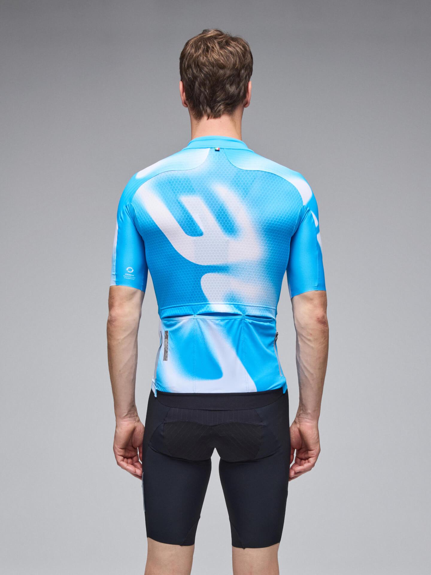 Perfect for warm weather and higher-intensity rides, the Q36.5 Gregarius Pro Cycling Jersey ensures outstanding aerodynamic performance through a modern raglan cut and ribbed sleeve system. The ultra-breathable material of the front panels combines with the honeycomb mesh on the back to provide great thermoregulation and comfort for intense summer rides. The big logo graphic is stylized from the repetition of an oversized Q36.5 logo creating an aggressive new racing pattern