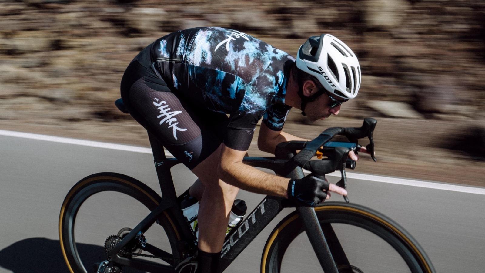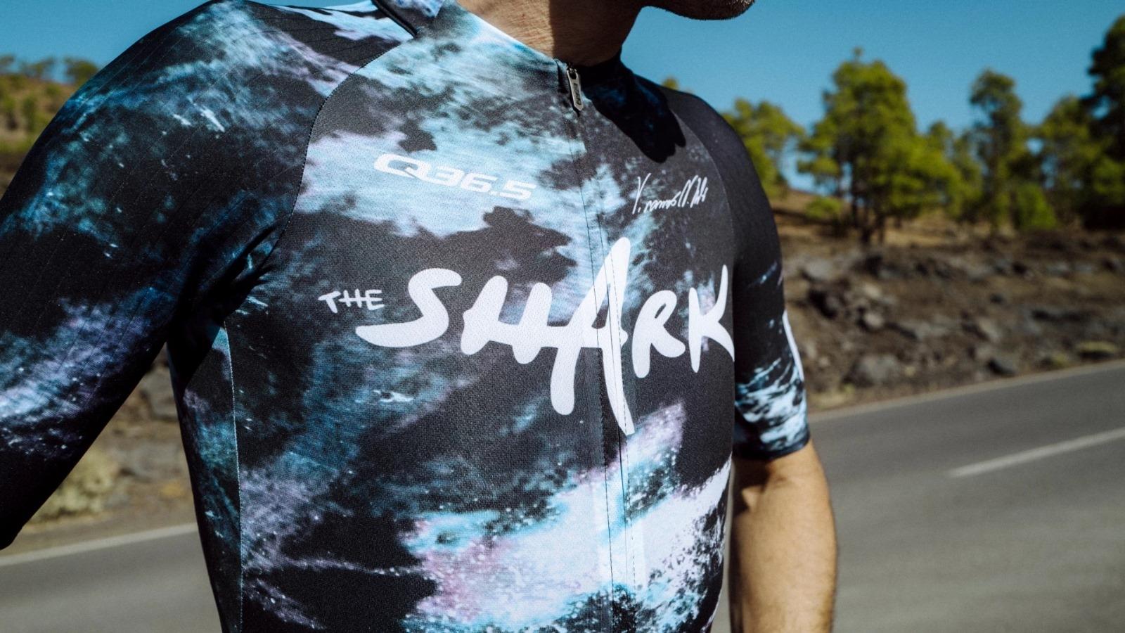 Perfect for warm weather and higher-intensity rides, the Q36.5 Gregarius Pro Nibali Ocean Jersey ensures outstanding aerodynamic performance through a modern raglan cut and ribbed sleeve system. The ultra-breathable material of the front panels combines with the honeycomb mesh on the back to provide great thermoregulation and comfort for intense summer rides. The graphic design of the jersey evokes the deep blues and blacks we see as we gaze into the waters where Lo Squalo flourishes.
