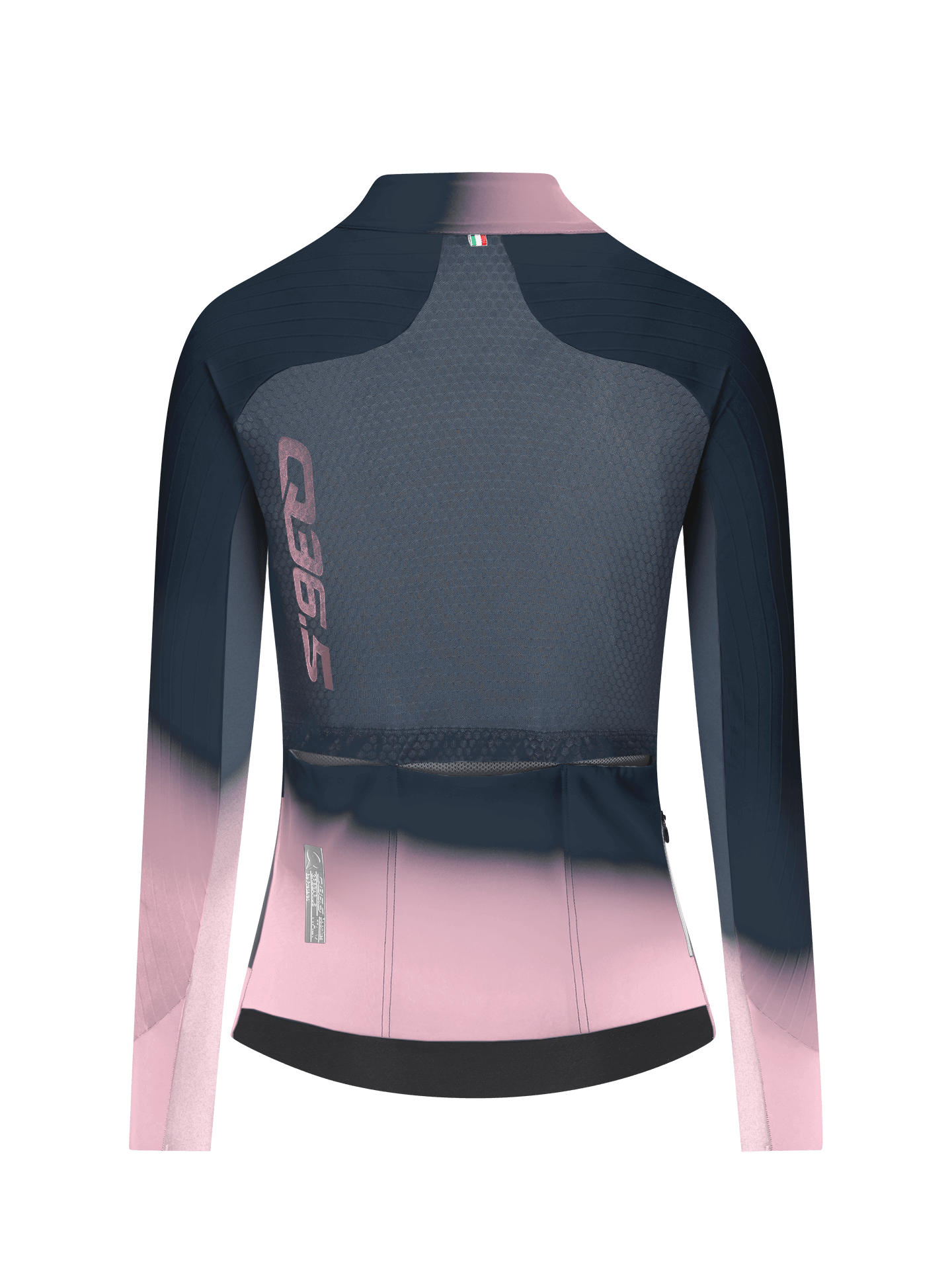 The Q36.5 Gregarius Hybrid Light Collar Fade Long Sleeve Jersey is an ultralight spring essential that uses an ergonomic, aero-efficient cut and a combination of intelligent materials to ensure high-performance comfort in milder temperatures. The panels of faded colour at the bottom of jersey and collar create an smoother transition between bib short and jersey colours for an ultra-clean on bike look.