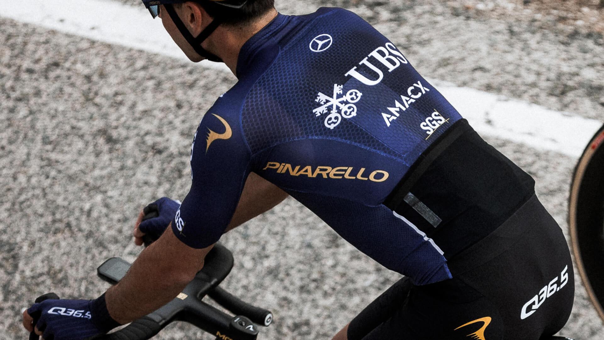 Based on the developments of the team’s Race Suits, the 2026 Pinarello - Q36.5 Pro Cycling Team Gregarius Clima Jersey is an ultralight racing and training jersey tuned for consistent high performance across a wide range of temperatures, intensities and speeds offering riders the ultimate tool for high quality spring and summer kilometres in the saddle. The 2026 design continues to reference our classic Q-Lab pattern with subtle blue on black fade across the central chest area whilst our new signature blue is a dark and rich tone, with shades of purple, making for a perfect match with a pair of black Dottore Pro bib shorts.