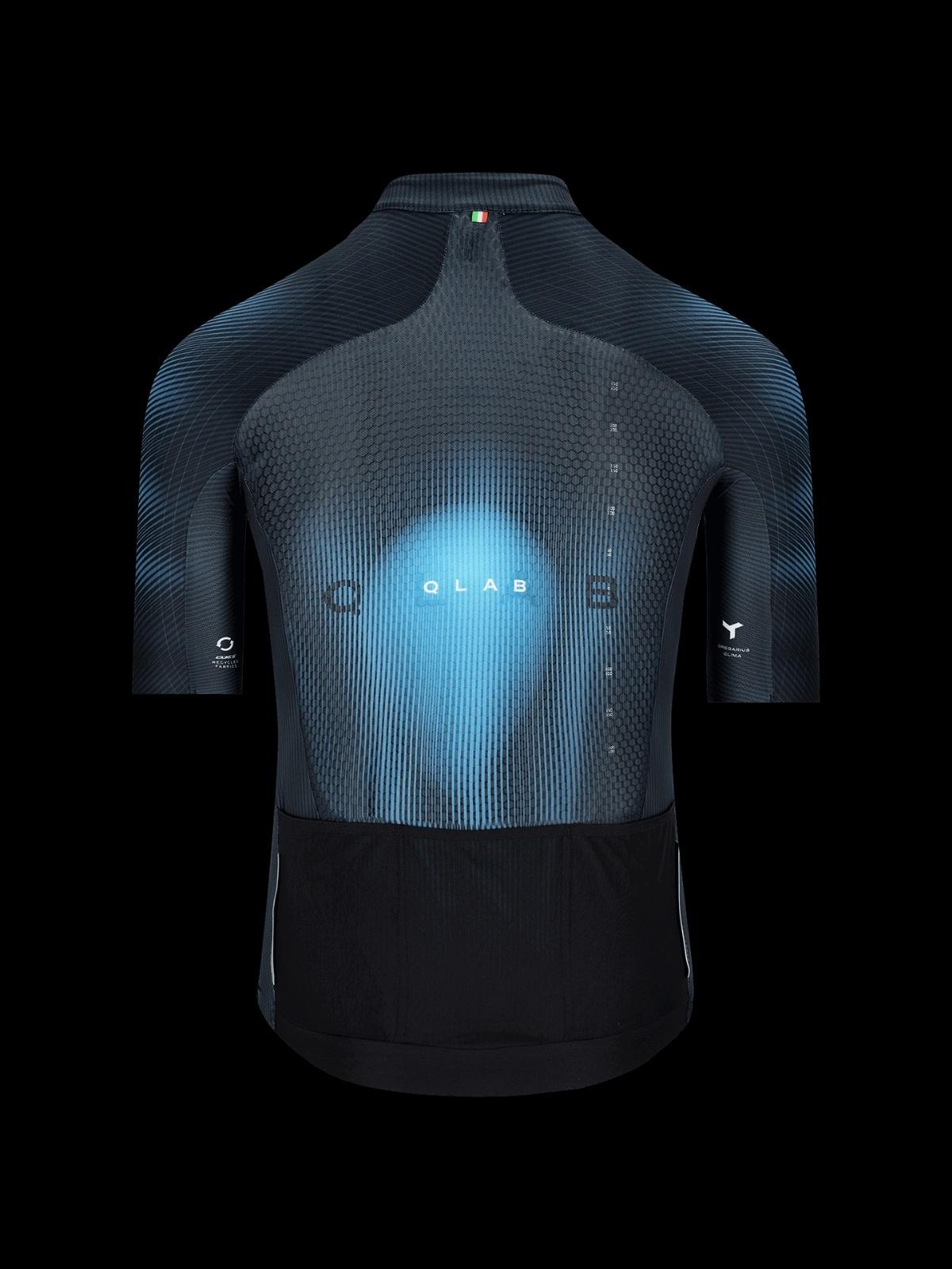 Made from a proprietary mesh knitted fabric, the Q36.5 Gregarius Clima QLAB Jersey for Men creates an almost imperceptible 3D structure across the torso to improve ventilation as well as moisture transfer. Lightweight and soft on the skin, the honeycomb material used for the back panels encourages a push-pull effect to prevent moisture build-up while moving the sweat to the outer layer of the fabric where it can evaporate quickly. The raglan sleeve design uses the same ribbed aerodynamic fabric as our Gregarius Pro Jersey. The overall feeling of lightness is further enhanced by the mesh rear pockets, exclusive to this model. The design references our body heat map sensors and heat zone mapping that we conduct in our QLAB to research how to keep the rider’s optimum body temperature in all riding conditions.