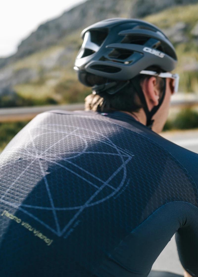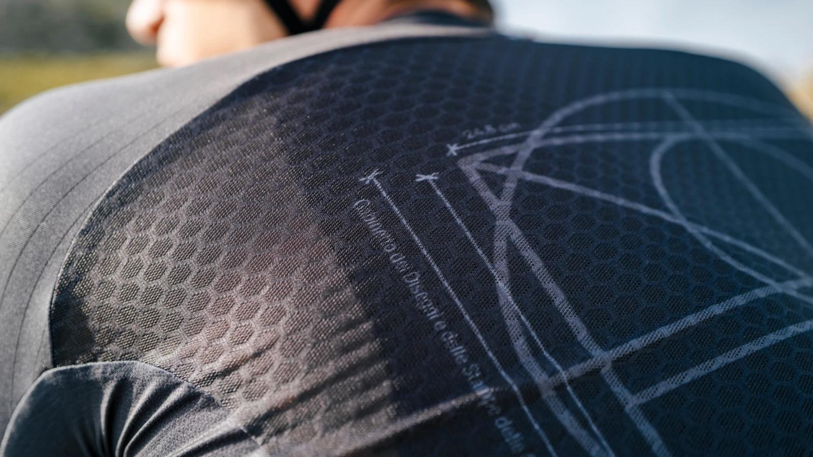 Made from a three-dimensional mesh knitted fabric, the Q36.5 Gregarius Clima Vitruvian Jersey creates an almost imperceptible structure to improve ventilation as well as moisture transfer. Lightweight and soft on the skin, the honeycomb material used for the back panels encourages a push-pull effect to prevent moisture build-up while moving the sweat to the outer layer of the fabric where it can evaporate quickly. The jersey design takes inspiration from the study of human proportions represented by the famous Leonardo Da Vinci drawing of Homo Vitruvius, which encourages us to explore beyond our limits and expectations.
