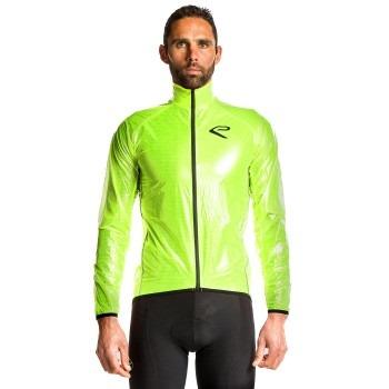 This wateproof rain jacket has been designed specifically for motivated cyclists, extremely lightweight, close fitting, it takes up little space in a jersey back Pocket. As it is transparent the jersey and race number if involved in competive cycling is still visible.