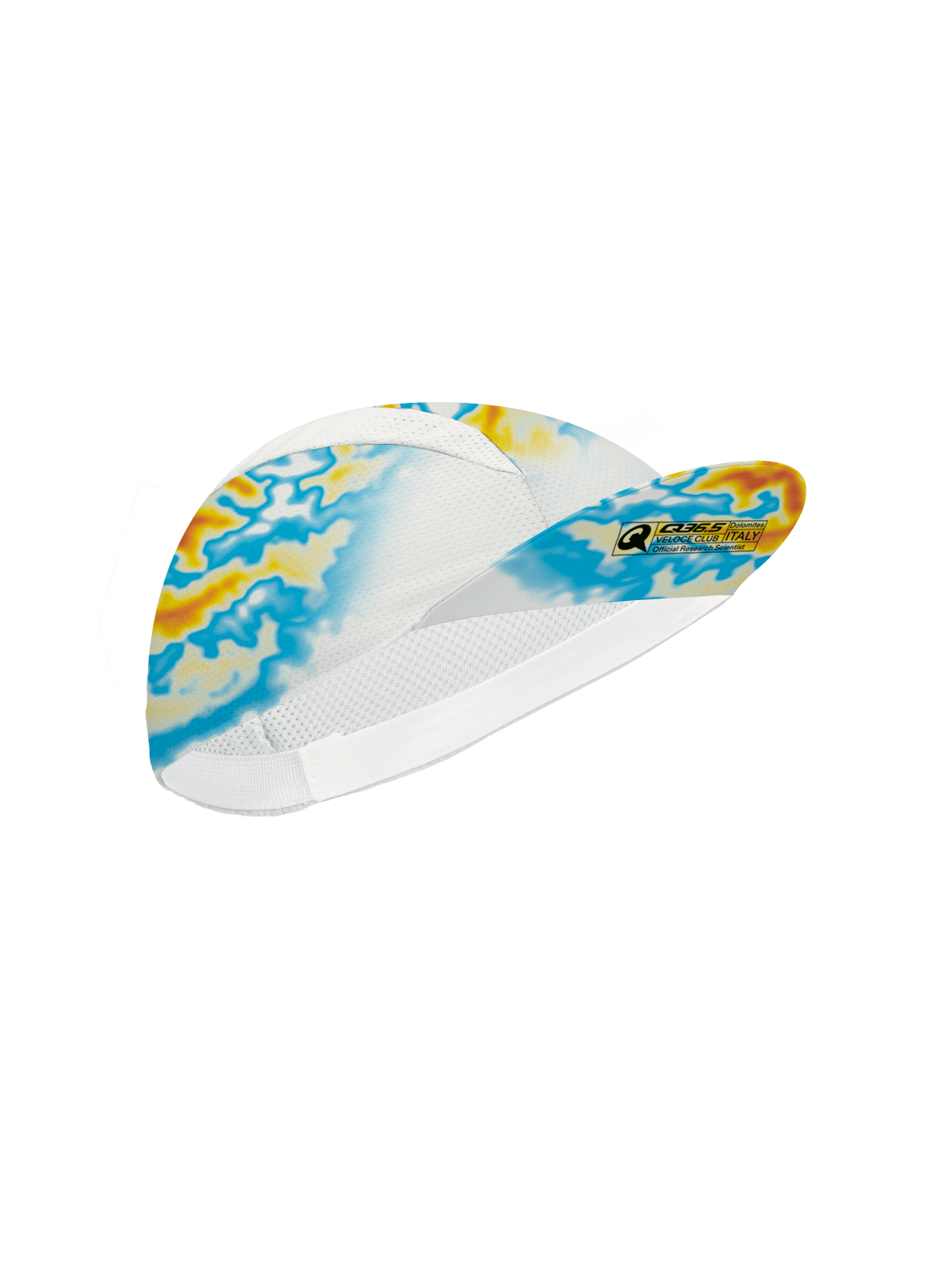 The traditional cotton cycling cap has been fine-tuned by Q36.5 through the use of a knitted lightweight polyester and the addition of two polyester mesh inserts on the sides of the central panel which offer a closer fit as well as ventilation. A polyamide sweatband promises a zero- irritation interface with the skin and efficiently wicks perspiration.