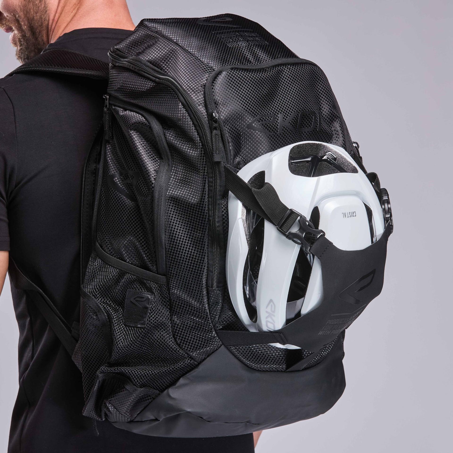 This compact, tough backpack, built for racers, offers 14 smart storage spots for all your cycling gear (kit, helmet, bidons, nutrition, tools) and your personal items (keys, electronics...)